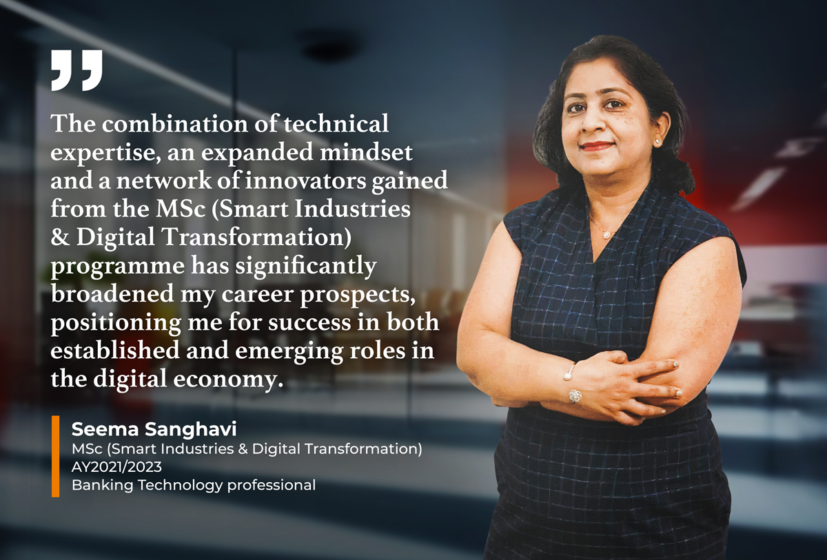 The combination of technical expertise, an expanded mindset and a network of innovators gained from the MSc (Smart Industries & Digital Transformation) programme has significantly broadened my career prospects, positioning me for success in both established and emerging roles in the digital economy.